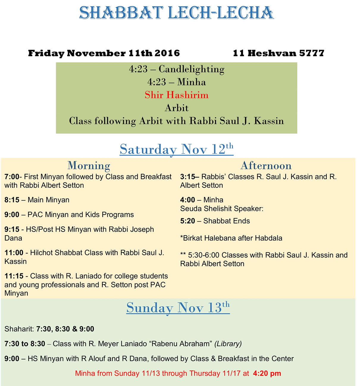 Shabbat Schedule
